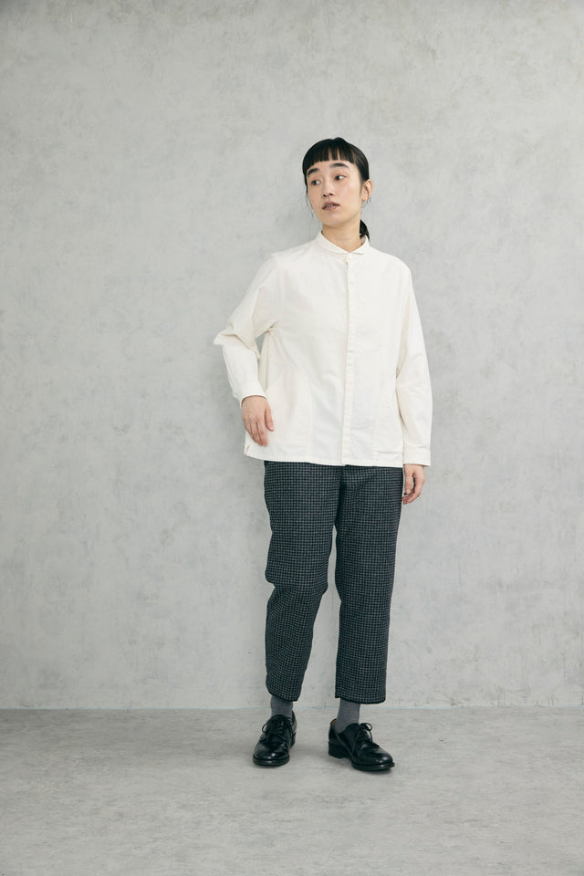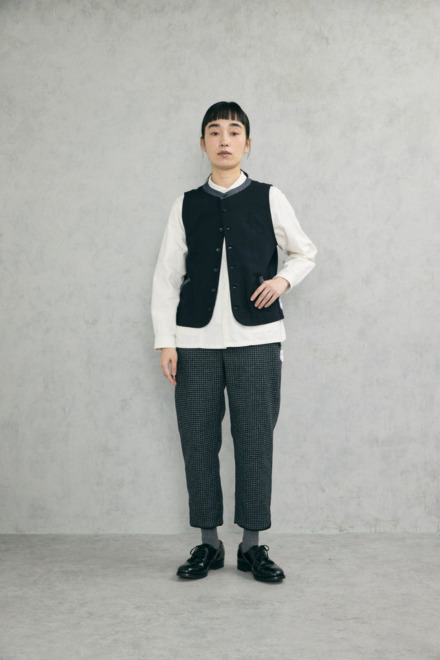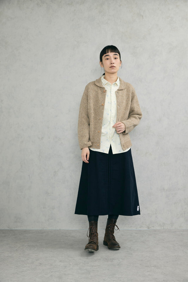 youtubeチャンネル ゆきふいるむ「逆お店図鑑」にて秋服商品の紹介をしていただきました。 coordinate #01 丸みのあるデザインが可愛いキルティングコートに、ゆったりしつつも綺麗な脚のラインが出るバルーンパンツのコーディネート。キルティングコートはとても軽く、ゆったりとしたサイズ感なので、重ね着をして長く着こなせるアイテムです。キルティングノーカラーコート / バルーンパンツ / コットン/2重衿タートル coordinate #02 二色の切替がポイントのニットカーディガンは、柔らかい肌触りで軽くゆったりと着こなせるこれからの季節にぴったりなアイテムです。 中に着用した、オリジナルプリントのヘリンボンシャツもコーディネートのアクセントになる一枚です。 切替カーディガン / ヘリンボンレギュラーシャツ / バルーンパンツ coordinate #03 ざっくりと開いたスリットのスリットワンピースは、重ね着アイテムを見せて楽しむことのできる一枚です。大きく開いたスリットで、動くたびに違う印象に。コーデュロイパンツは、細いピッチと柔らかい生地感で肌馴染みがよく、秋のパンツとして大活躍の一枚です。 サイドスリットワンピース / コーデュロイパンツ / コットン/2重衿タートル coordinate #04 vmの人気の定番アイテムのフードブルゾン。こちらの商品のみサイズが4サイズご用意がございます。しっかりとした厚手の生地に、サイドのリブでチャックを閉めた際のフィット感が気持ちのいいアイテムです。厚手の生地なので、フードの崩れもなく綺麗に着こなせる一枚です。中は起毛素材になっており、これから冬にかけても暖かく着用いただけるアイテムです。また、一番大きいサイズのサイズ5は、男性のMサイズのサイズ感で、男性の方も着用いただけます。フードブルゾン / タックスカート / コットン/2重衿タートル Other items コットン100%のニット、2重衿タートルコットンの柔らかい肌触りが気持ち良く、首元がチクチクしないタートルニット。薄手の質感でコディネートに取り入れやすアイテムです。 コットン/2重衿タートル 柔らかく大きめのストールで、コーディネートのポイントになるアイテムです。上下で異なる柄のデザインなので、巻き方次第で色々な見せ方を楽しめます。とても柔らかい生地なので、重くならずに着用していただけます。ハイビスカスストール