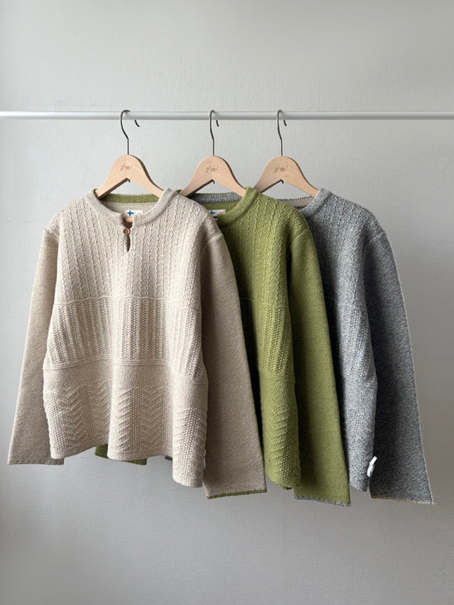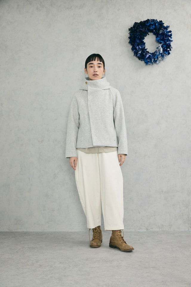 youtubeチャンネル ゆきふいるむ「逆お店図鑑」にて秋服商品の紹介をしていただきました。 coordinate #01 丸みのあるデザインが可愛いキルティングコートに、ゆったりしつつも綺麗な脚のラインが出るバルーンパンツのコーディネート。キルティングコートはとても軽く、ゆったりとしたサイズ感なので、重ね着をして長く着こなせるアイテムです。キルティングノーカラーコート / バルーンパンツ / コットン/2重衿タートル coordinate #02 二色の切替がポイントのニットカーディガンは、柔らかい肌触りで軽くゆったりと着こなせるこれからの季節にぴったりなアイテムです。 中に着用した、オリジナルプリントのヘリンボンシャツもコーディネートのアクセントになる一枚です。 切替カーディガン / ヘリンボンレギュラーシャツ / バルーンパンツ coordinate #03 ざっくりと開いたスリットのスリットワンピースは、重ね着アイテムを見せて楽しむことのできる一枚です。大きく開いたスリットで、動くたびに違う印象に。コーデュロイパンツは、細いピッチと柔らかい生地感で肌馴染みがよく、秋のパンツとして大活躍の一枚です。 サイドスリットワンピース / コーデュロイパンツ / コットン/2重衿タートル coordinate #04 vmの人気の定番アイテムのフードブルゾン。こちらの商品のみサイズが4サイズご用意がございます。しっかりとした厚手の生地に、サイドのリブでチャックを閉めた際のフィット感が気持ちのいいアイテムです。厚手の生地なので、フードの崩れもなく綺麗に着こなせる一枚です。中は起毛素材になっており、これから冬にかけても暖かく着用いただけるアイテムです。また、一番大きいサイズのサイズ5は、男性のMサイズのサイズ感で、男性の方も着用いただけます。フードブルゾン / タックスカート / コットン/2重衿タートル Other items コットン100%のニット、2重衿タートルコットンの柔らかい肌触りが気持ち良く、首元がチクチクしないタートルニット。薄手の質感でコディネートに取り入れやすアイテムです。 コットン/2重衿タートル 柔らかく大きめのストールで、コーディネートのポイントになるアイテムです。上下で異なる柄のデザインなので、巻き方次第で色々な見せ方を楽しめます。とても柔らかい生地なので、重くならずに着用していただけます。ハイビスカスストール