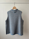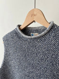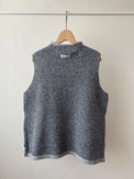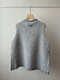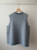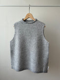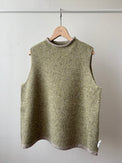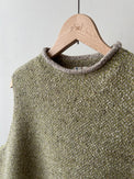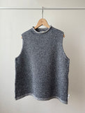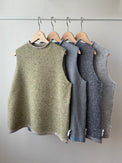 素材のあたたかみと表情を活かした、レイヤードが楽しみなベストです。ツイードのような豊かな表情が魅力のこちらのベストには、シルクネップを含んだ奥行きのある糸を使いました。さらに、タスマニア産のファインウールを主原料とした杢調のウール糸を組み合わせることで、やわらかさとほどよいあたたかみを感じる素材に仕上げています。