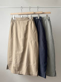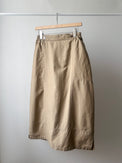 ベルト内側には配色ディテールをさりげなく効かせ、見えない部分にもこだわりをプラス。シンプルなトップスとも相性が良く、幅広いコーディネートに取り入れやすいスカートです。
