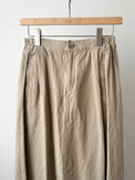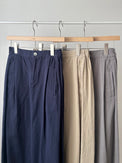 素材には、生機(きばた)の段階から長時間かけて丁寧に揉みほぐし、最終工程でもさらに生地の芯からほぐすことで、ソフトでふっくらとした風合いとヴィンテージのような表情を引き出したコットンヘンプのハイカウントギャバを使用しています。
