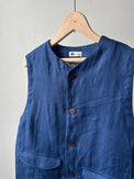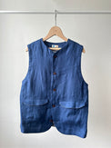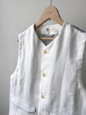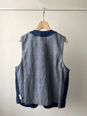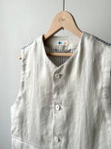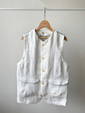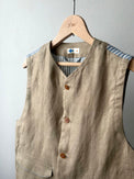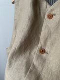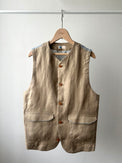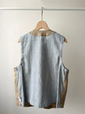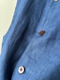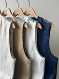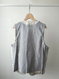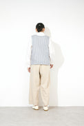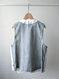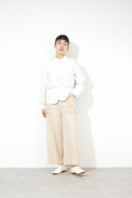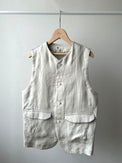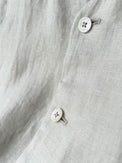 フレンチリネンを使用したリネンツイルとストライプ生地を組み合わせ、ナチュラルな風合いの中にさりげない変化を加えた一着です。軽やかで通気性の良い素材感が、季節感のある着こなしを演出します。