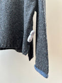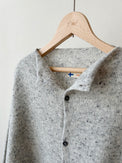 使用している糸は、中国・内モンゴル産の希少なホワイトカシミヤと、ーストラリア産メリノ種ファインラムズウール(19.5ミクロン)をブレンドした、こだわりのネップ糸。さらにウールネップを加えることで、表情豊かな自然な風合いに仕上げています。