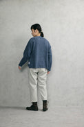 デザインは、程よくゆとりがあり、気軽に羽織れるカーディガンタイプ。シンプルでカジュアルなコーディネートでは、素材の魅力が引き立ち、自然と映えます。