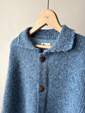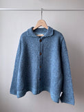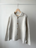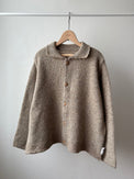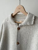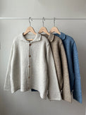19.5μのウールを使ったスポンジッシュな紡毛糸とウールブークレーの糸を組み合わせ、ソフトで膨らみがありながら軽やかな着心地のニットジャケットに仕上げました。ブークレー糸の特性を活かし、軽く暖かい着用感が特徴です。