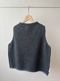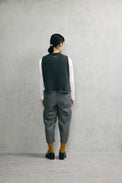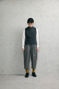 ゆったりとしたシルエットに、サイドの縫い目(アウトシーム)がさりげないアクセントになっています。シャツやカットソーと重ねてももたつかず、ワイドパンツやスカートともバランスよく着こなせます。