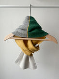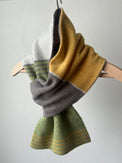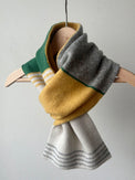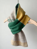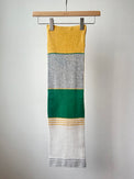 多色づかいのボーダー柄が目を引くデザインで、表と裏、どちらの面も使えるリバーシブル仕様。その日の気分や装いに合わせて、異なる表情をお楽しみいただけます。