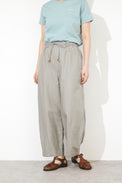 樽のような丸みを帯びたバレルシルエットは、程よいボリュームを持たせながらも、裾にかけてすっきりと引き締まるラインが特徴。トレンド感がありつつ、バランスの取りやすいデザインです。