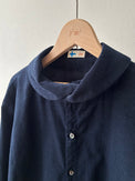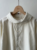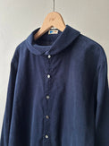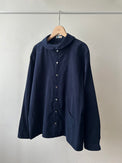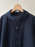 スタンドカラーとアシンメトリーフロントが特徴のシャツです。