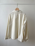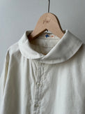 打掛け釦の表側にビーズを重ねたり、小ぶりなポケットや小さな釦を選ぶなど、vmらしい細やかなディテールが随所に施されています。裾は前下がりのデザインで、動きのあるシルエットを演出。生地にはライトウェイトの極細畝コール天素材を使用。ソフトでしなやかな風合いが特徴で、軽やかな着心地をお楽しみいただけます。