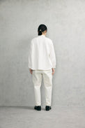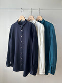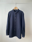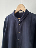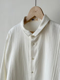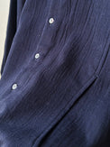 羽織のようにもお使いいただける、シンプルな見た目に遊びの利いたシャツです。