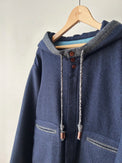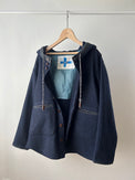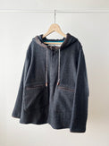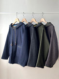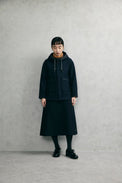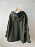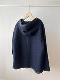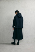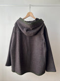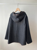 ふんわりと軽く、やわらかな風合いのウール素材を使用したフードジャケットです。裏地は袖と背中部分のみに抑え、軽さを大切にした仕立てにしました。