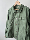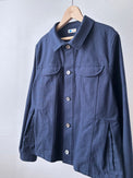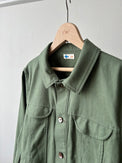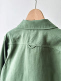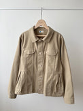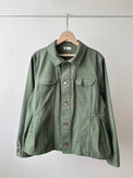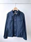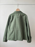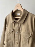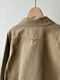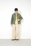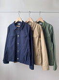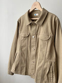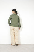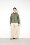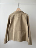 Gジャンをベースにした、軽やかに羽織れるライトアウターです。裾に向かってやや広がるAラインシルエットに仕上げ、タックの中にさりげなく収めたポケットが隠れたデザインポイントになっています。カジュアルながらも女性らしいバランスで着こなせる一着です。第一釦裏にはビーズをあしらい、vmらしい控えめなアクセントを添えました。