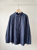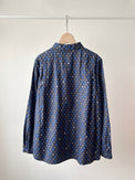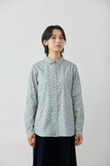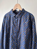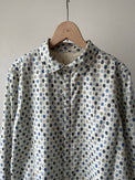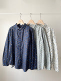 オリジナル柄プリントのライフロントのレギュラーシャツです。小紋柄のような柄のため、一枚でも着易く、またインナーにした際は、無地のアウターやセーター、ベストから見える柄が効いて、冬のスタイリングを楽しくしてくれます。どこが見えても色味のまとまりが良いカラーリングです。