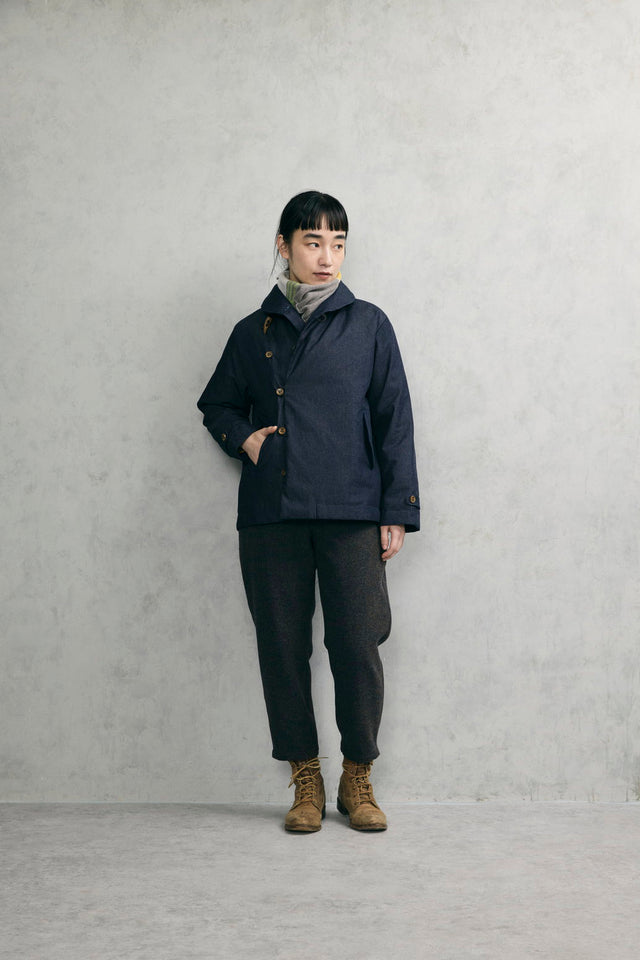 デニムショールカラーダウンジャケット (VFJK-5643D)