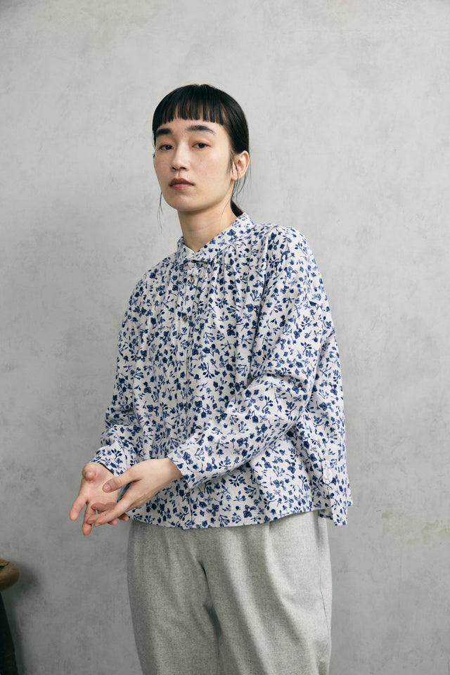 クラウドベリー柄ワイドカラーギャザーシャツ(VFSH-5662C)